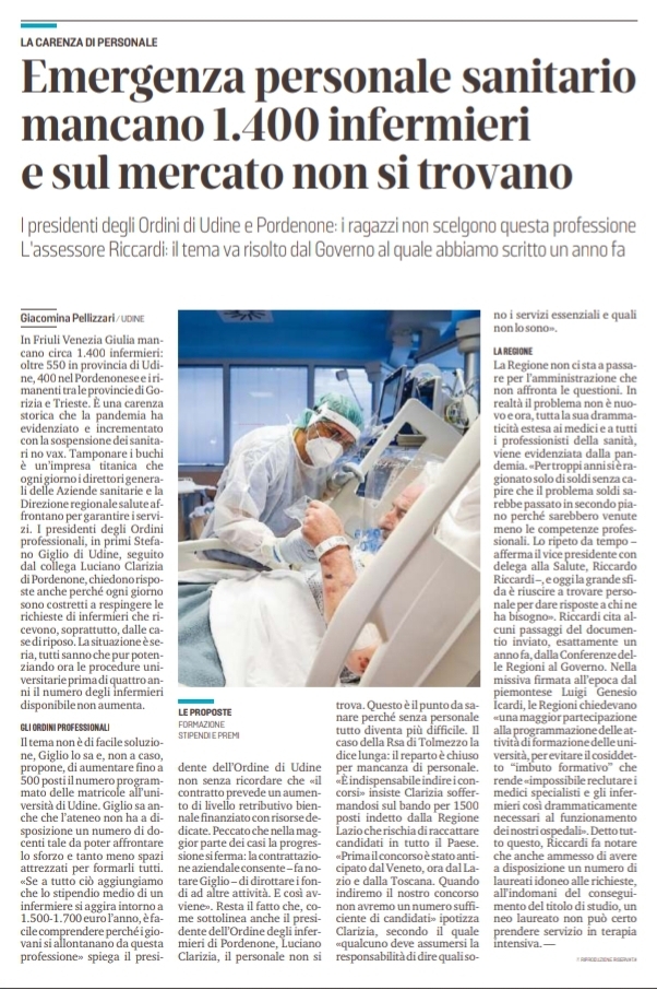 Quasi ogni giorno l’OPI di Udine riceve continue richieste di assunzione di infermieri soprattutto da parte delle case di riposo e delle residenze della provincia di udine.