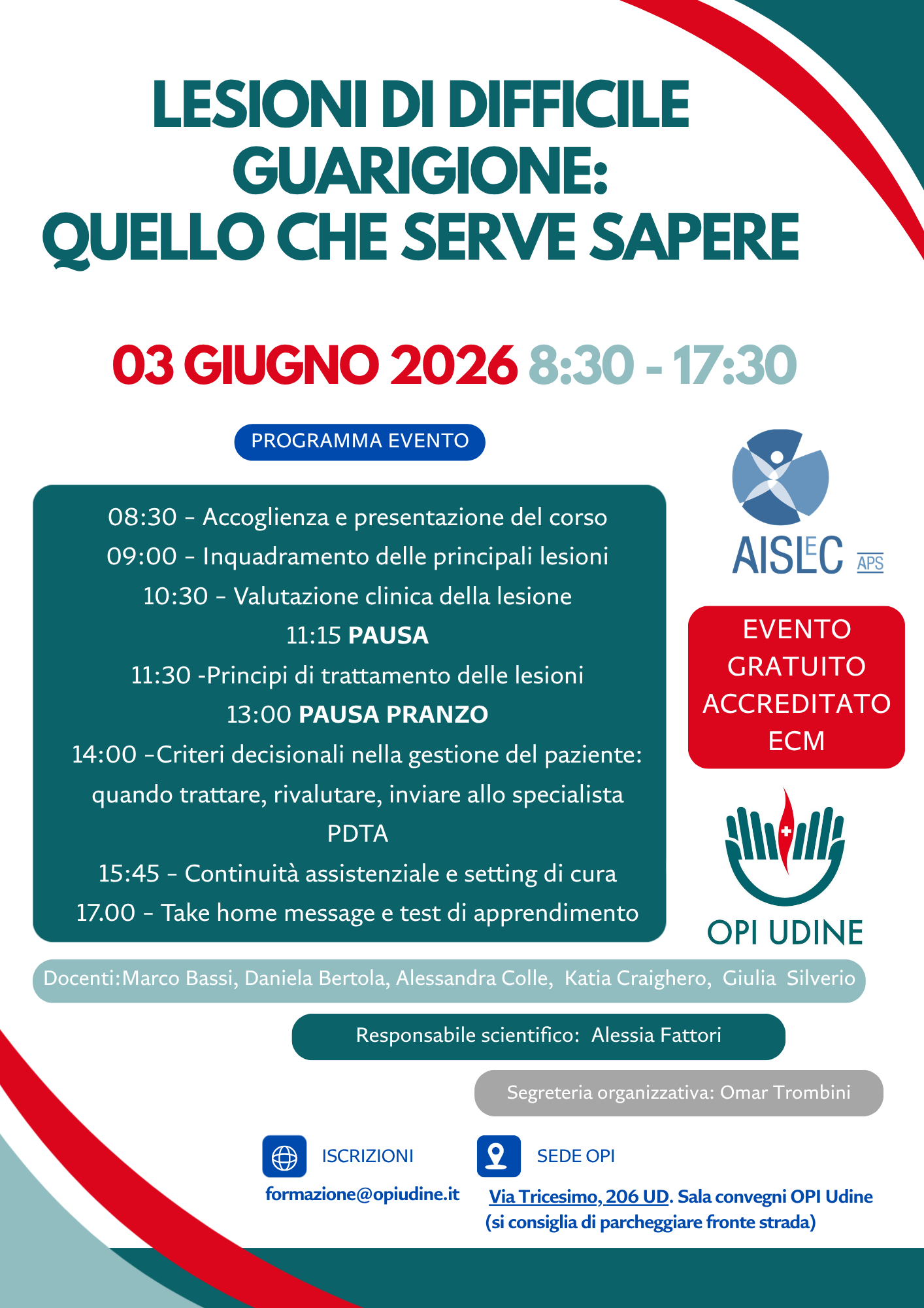 Questo corso, promosso dall’OPI di Udine con il patrocinio di AISLeC, offre un approccio pratico e immediatamente applicabile basato su PDTA, per guidare i professionisti nella valutazione, classificazione e gestione delle lesioni.